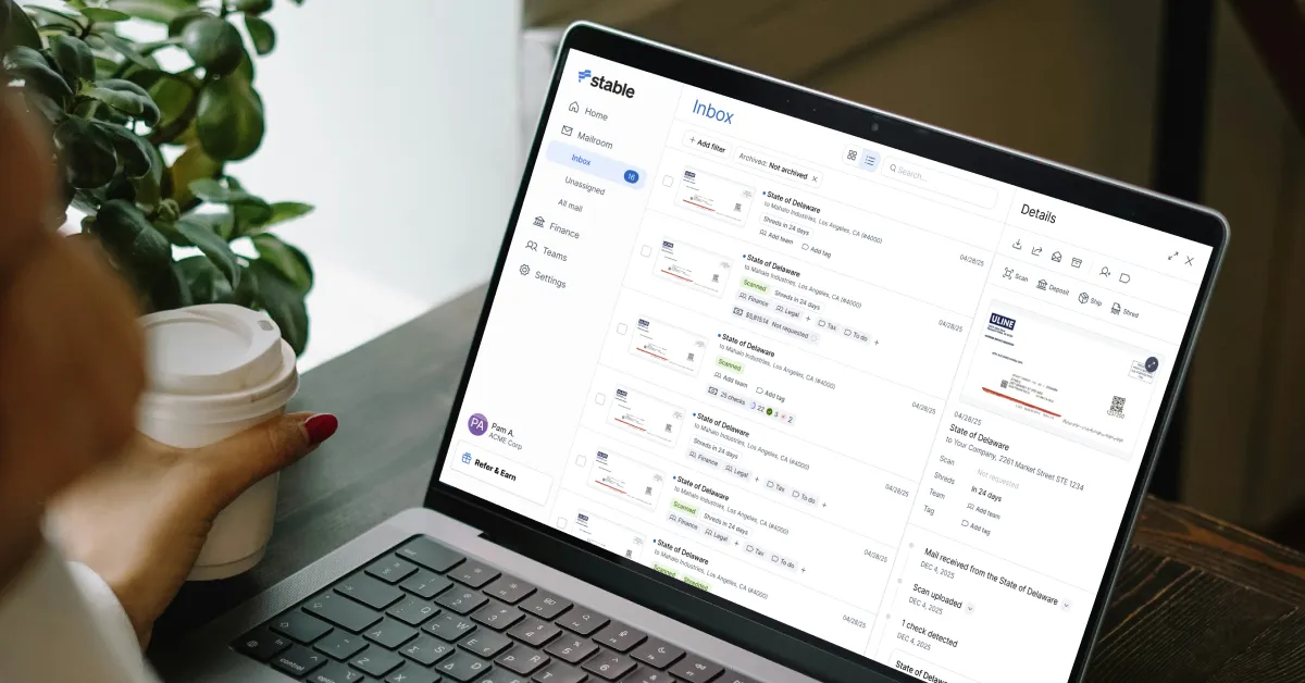 Whether you’re a small business or a distributed enterprise, Stable offers mail scanning, forwarding, shredding, and check deposit services to simplify your operations.