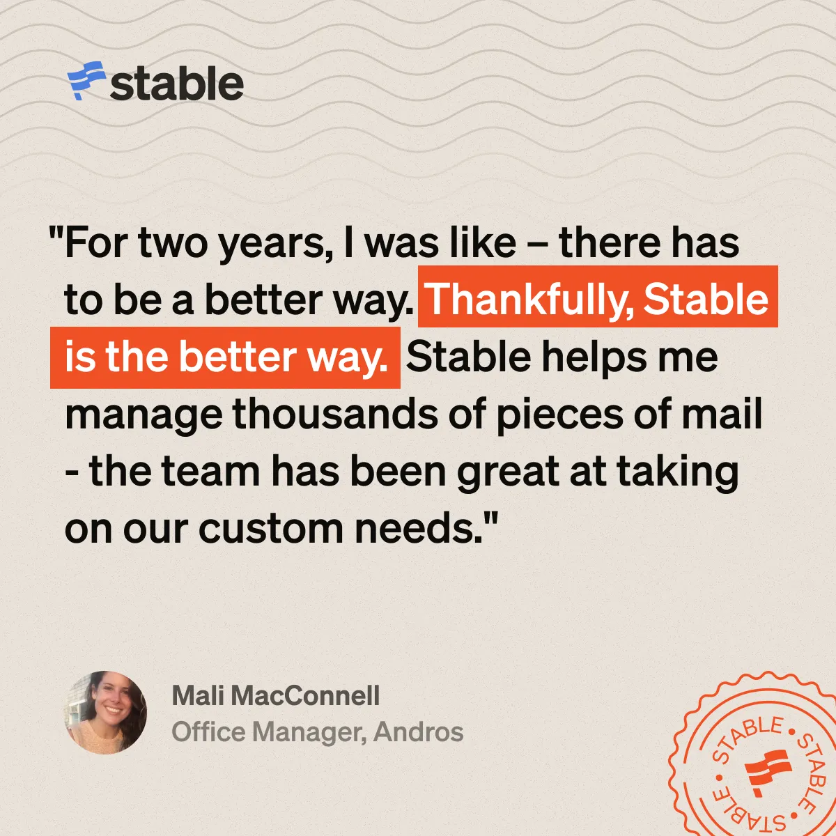- Mail handling automations and integrations that make the process as intuitive, easy, and seamless as possible. Plus, Stable is constantly iterating based on real customer feedback.