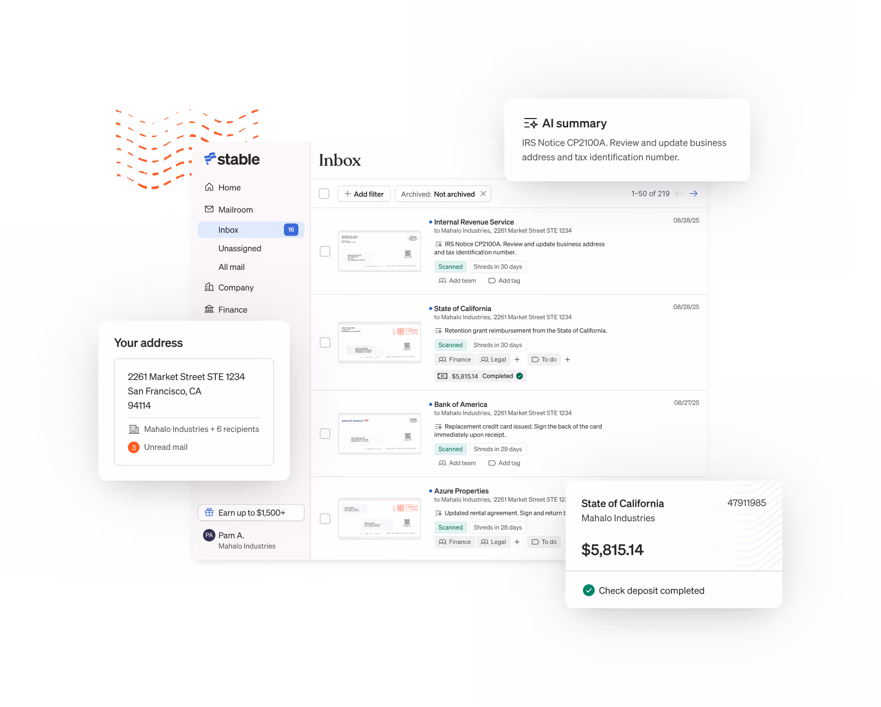 Stable helps businesses from formation to IPO make mail and address management one less thing to worry about.