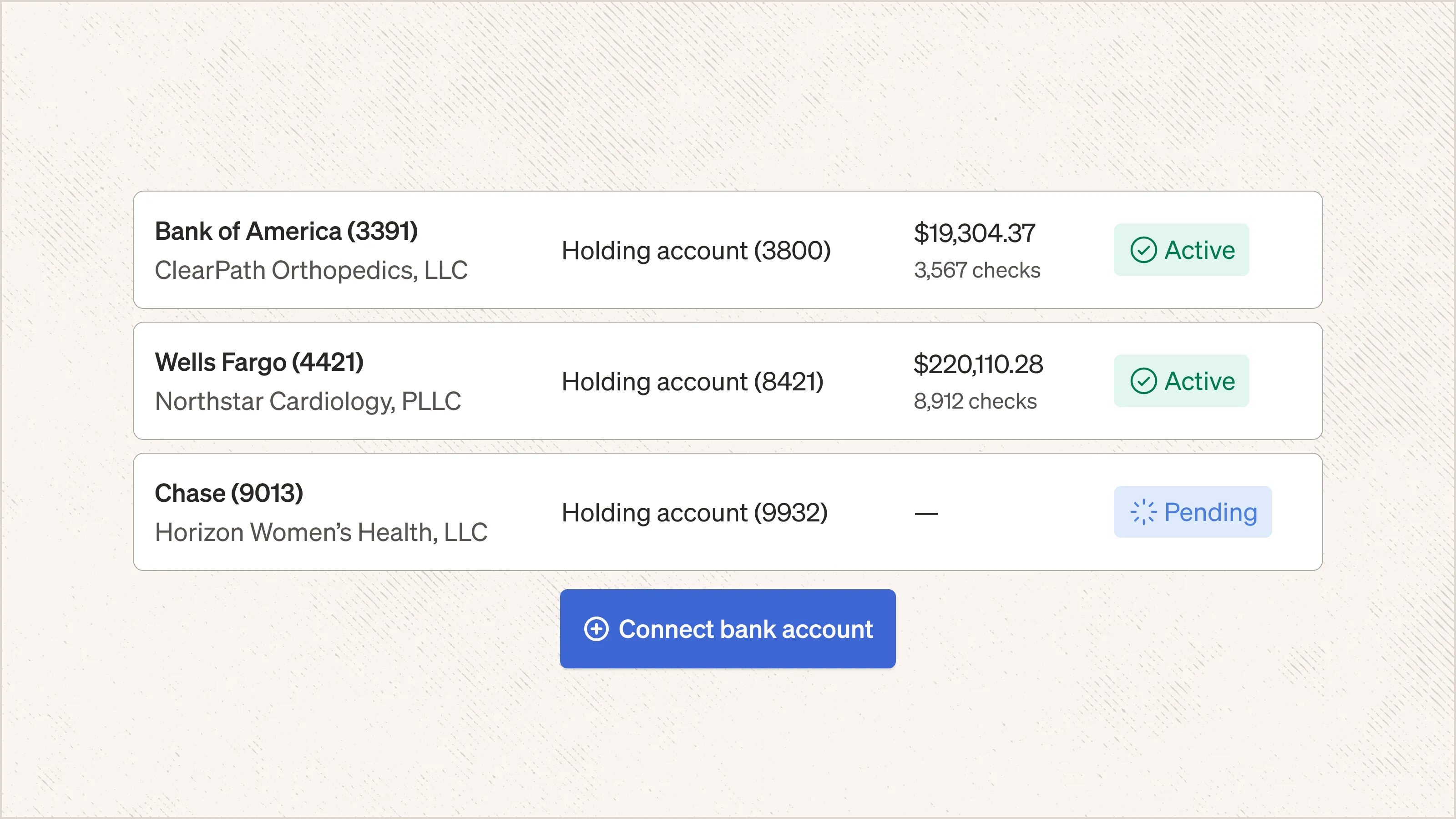 You can now enable Electronic Check Deposit (ECD) for every legal entity you manage. Previously, ECD could only be linked to a single legal entity. Now, when setting up a financial account, you can select which legal entity you want to deposit checks for, giving you more flexibility when managing check deposits across your organization.