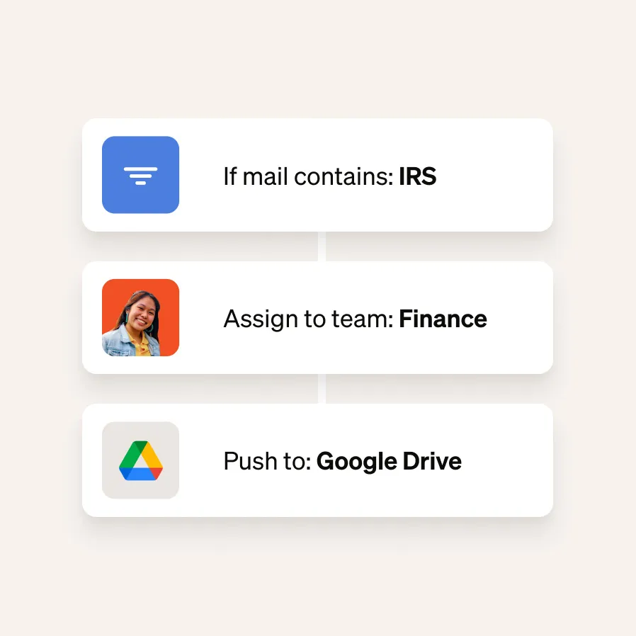 Take tedious mail tasks off your plate with mailroom automations. Have your mail automatically scanned, shipped, and more.